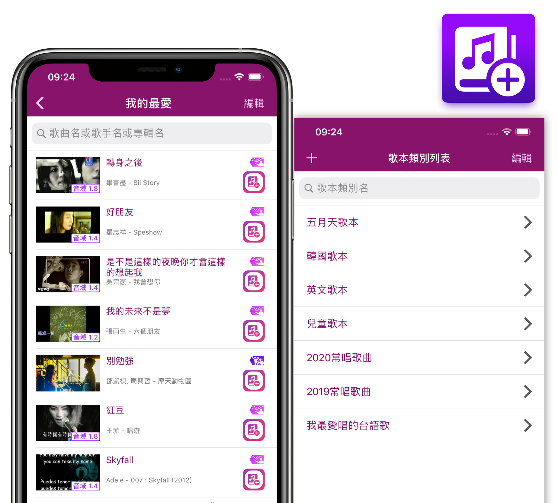 建立多本專屬於您的歌本; 讓您可以隨心情, 場合, 時間等選擇您要演唱的歌曲