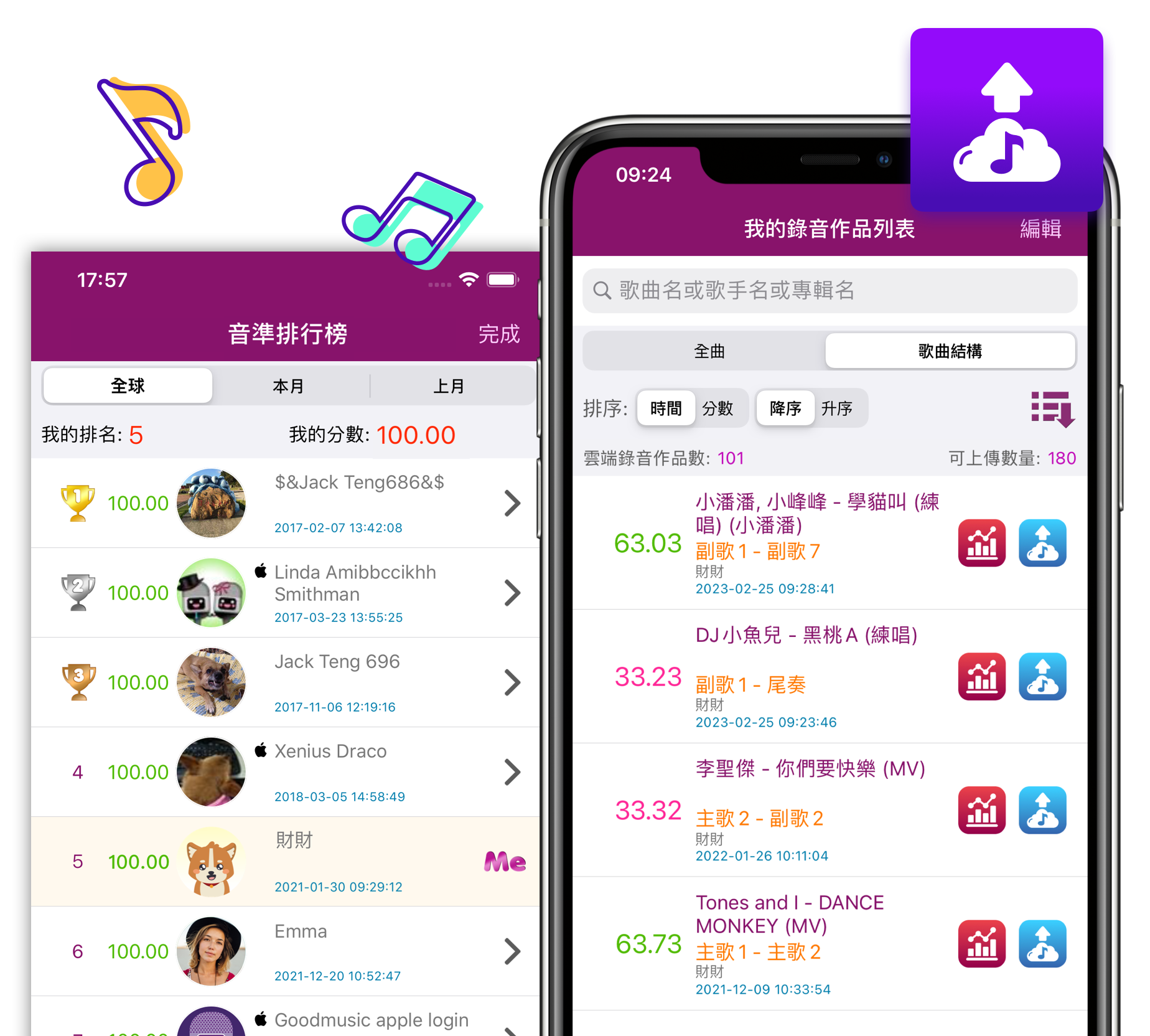 雲端儲存空間, 讓您可自由選擇上傳得意的錄音作品保存並參加全球競賽排行